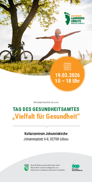 Anbei erhalten Sie einen Flyer für die Veranstaltung "Tag des Gesundheitsamtes - Vielfalt für Gesundheit" des Landkreises Görlitz.
