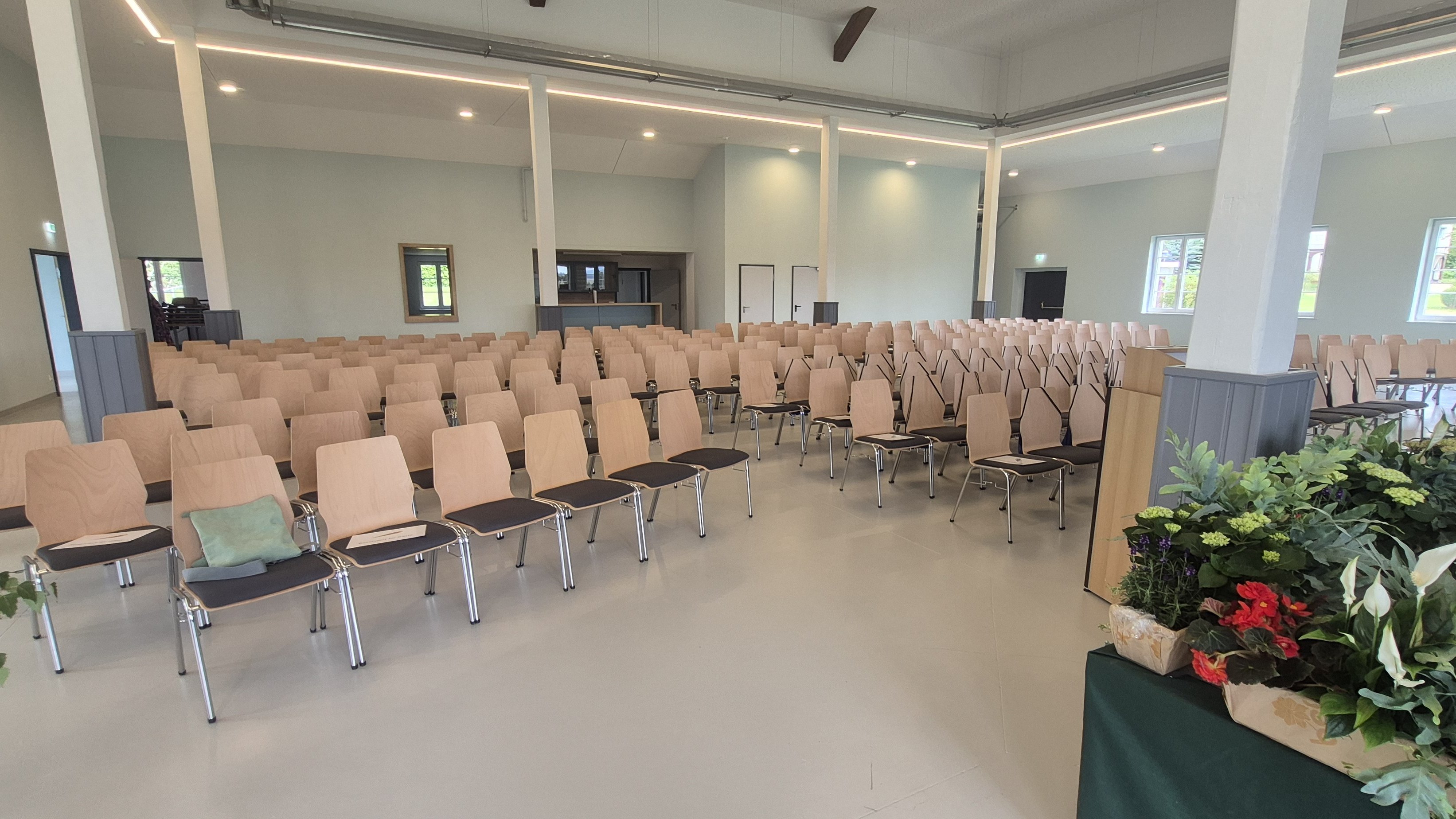 Mit einem großzügigen Saal, modernen technischen Einrichtungen und einem einladenden Ambiente ist der Veranstaltungsort bestens auf die Bedürfnisse der Gäste und Veranstalter vorbereitet.